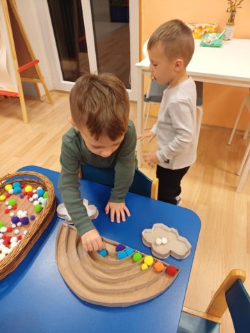 V říjnu děti poznávaly plody lesa, stromy, houby a povídali jsme si o počasí a odletu ptáků. Trávily jsme hodně času venku – v lese a na zahradě a pozorovaly proměny přírody, sbírali kaštany a uklízeli listí na zahradě. Z přírodnin jsme tvořili různé obrazce, malovali jsme barevný podzim a vyzkoušeli jsme různé pokusy. Děti se naučily ptačí tanec, písničku Hádaly se houby, u kterých si i zatancovaly. Divadélko Koloběžka k nám přijelo s pohádkou „Jak Vítek hledal vítr“. Celý měsíc byl ve znamení poznávání nových věcí kolem nás.