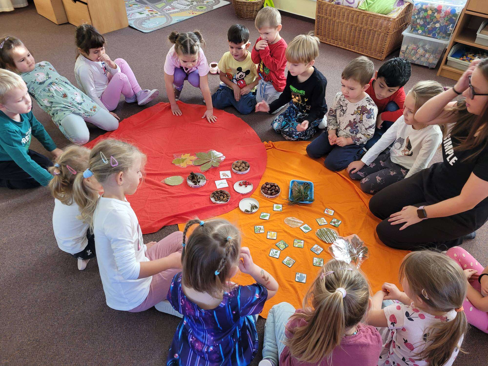Přišel podzim a s ním byla spojena i témata tohoto měsíce. Seznamovali jsme se s plody lesa a zvířátky, které v lese žijí.