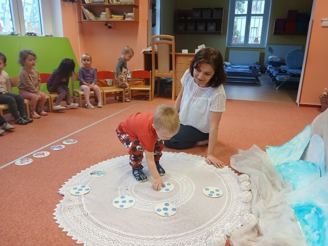 tučňáci, nebo lední medvědi? Na opačné straně zeměkoule se zase sluní… třeba velbloud. Která vločka je menší, která větší? Zpíváme, tančíme, tvoříme a hrajeme krásné zimní hry.