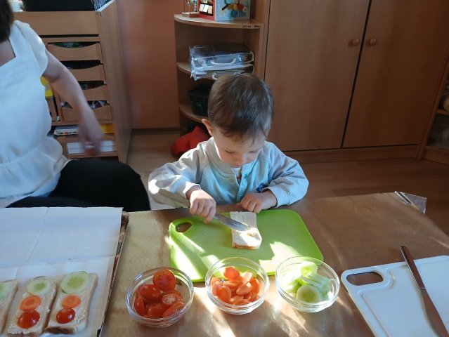 dopravní prostředky, „vaříme“, kreslíme, lepíme a cvičíme.