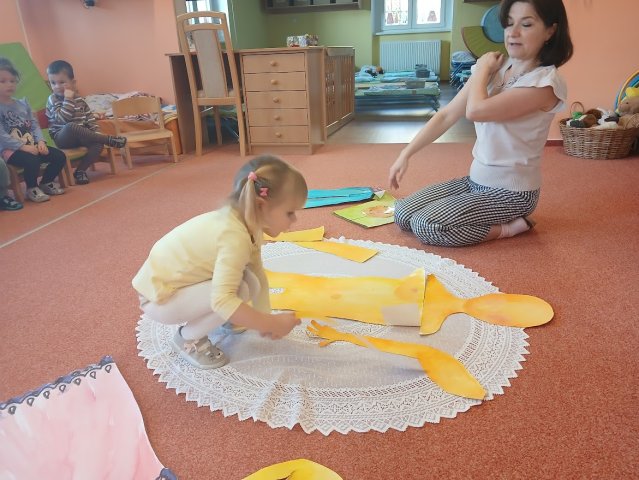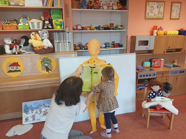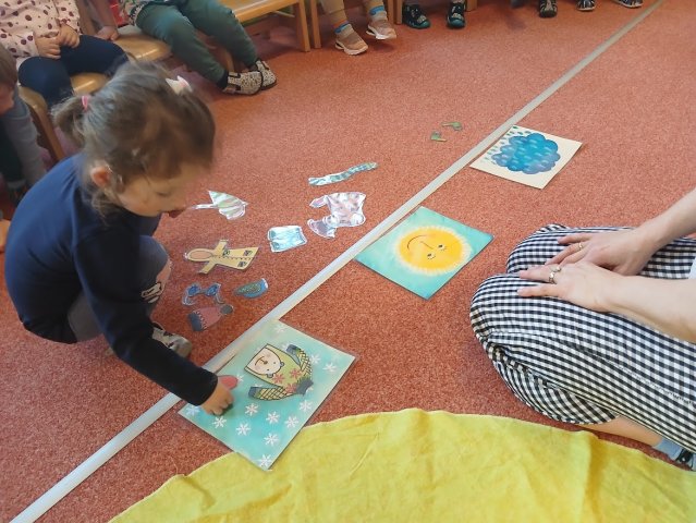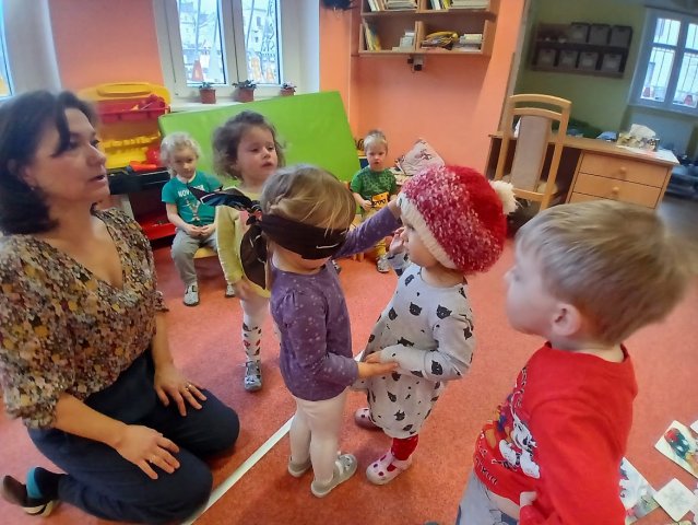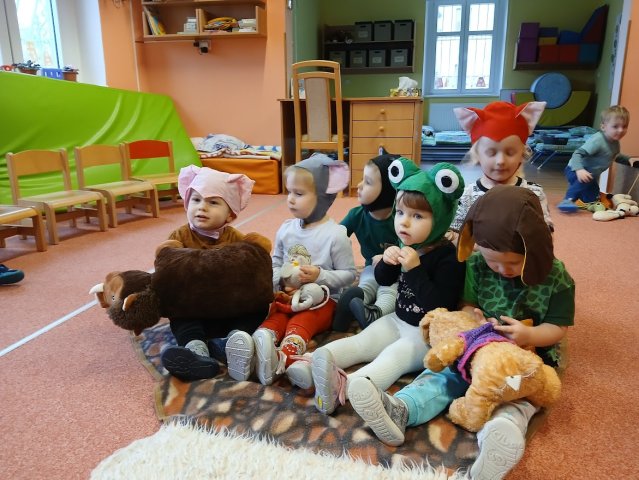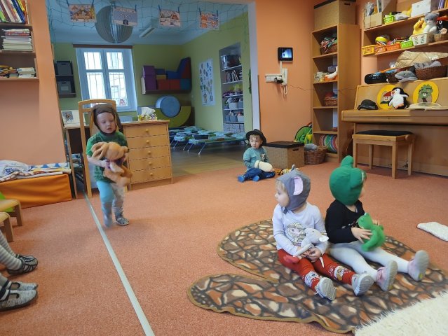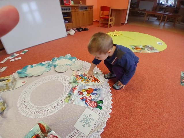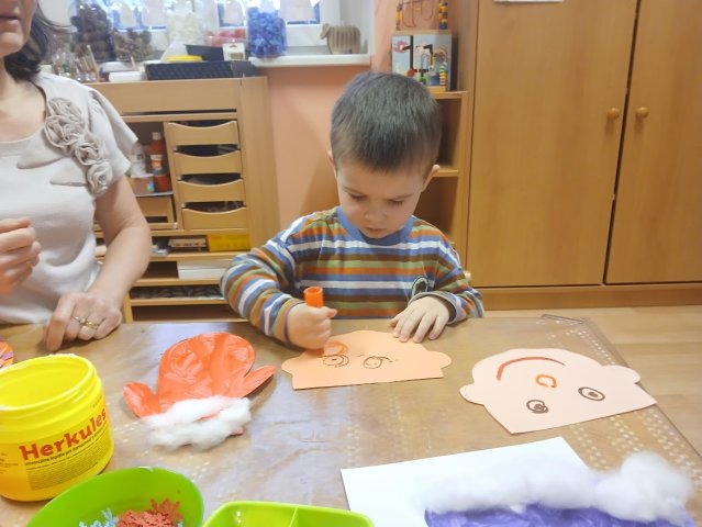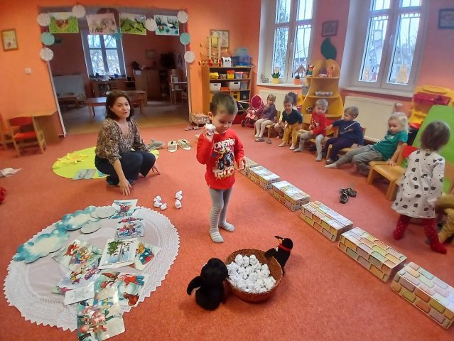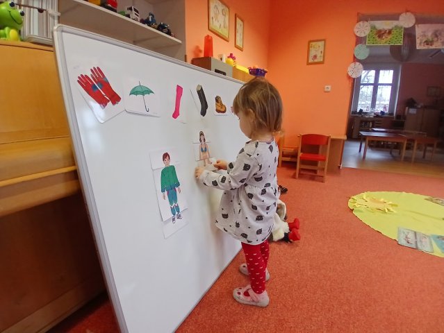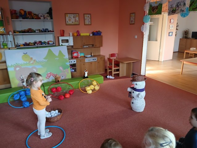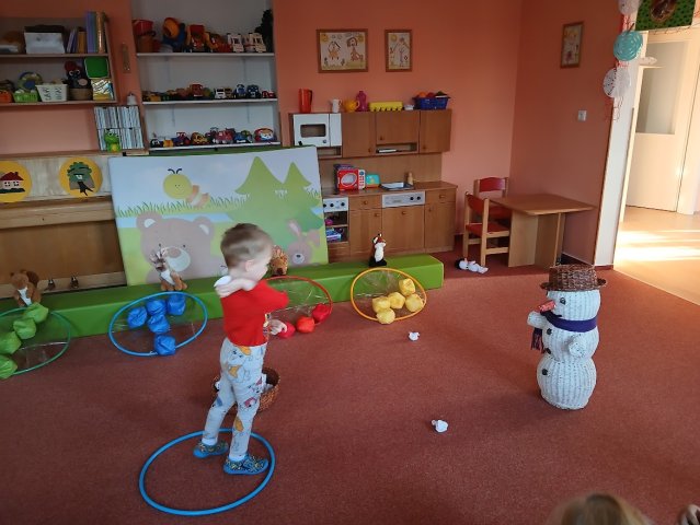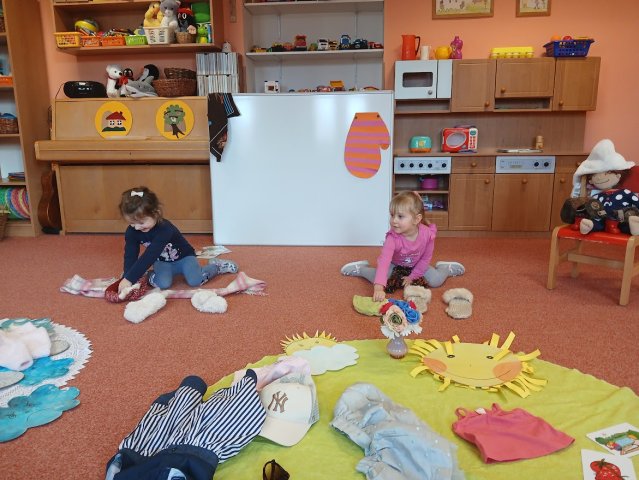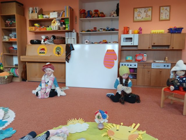 zábava. Děti zpívají, tančí, hledají ztracené rukavičky do páru a hrají krásné hry. S veselými říkankami se učí, jak správně se do zimy a mrazu oblékat, a některé oblečení si s nadšením tvoří a zdobí.