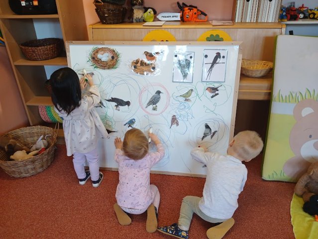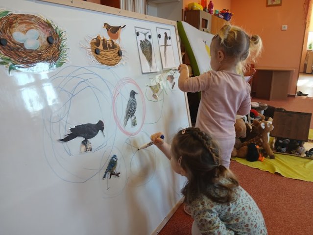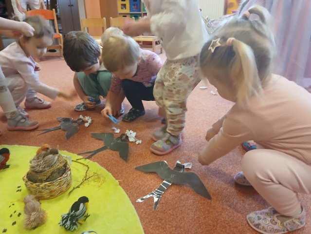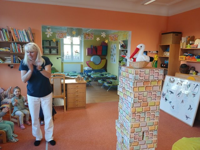 příchod jara. Ptáčkům stavíme hnízdečka a čáp Fanda nás poprosil o nový komín. Na ptáčky si hrajeme, cvičíme s nimi, zpíváme, tančíme i tvoříme.
