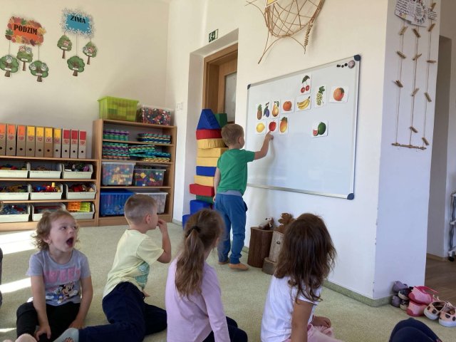V průběhu měsíce jsme se věnovali také tématům ovoce, zeleniny a babího léta. Děti třídily, poznávaly a ochutnávaly různé druhy plodů, učily se, odkud pocházejí a k čemu jsou pro nás důležité. Užily si také pozorování podzimní přírody, slunečných dnů i barevných proměn venku.