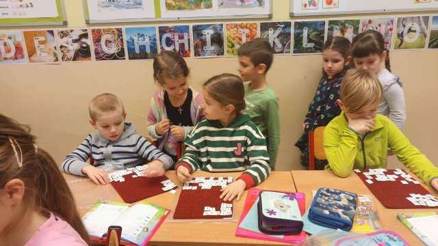 V lednu se byly podívat děti ve škole na své kamarády a zkusily si, jak taková výuka ve škole vypadá.