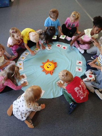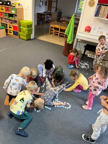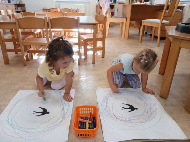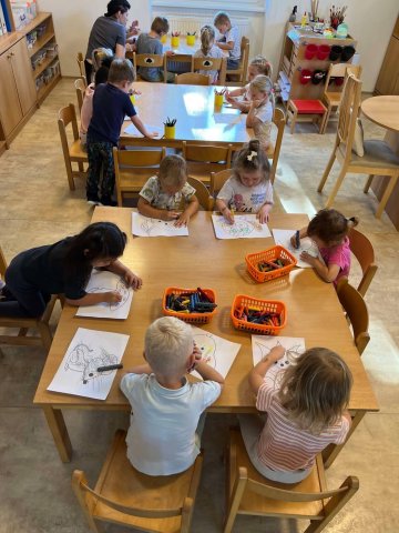 Děti ze třídy Sluníčko během prvních dnů ve školce poznávaly tváře nových kamarádů a učily se rozpoznat svou značku. Seznamovaly se s novým prostředím školky, objevovaly nové hračky, cvičily, malovaly i zpívaly.