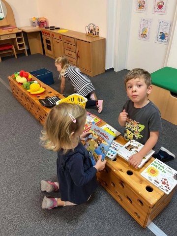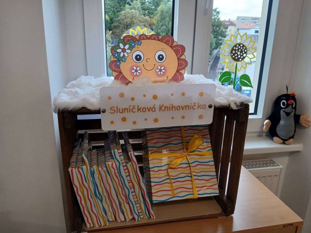 Z naší "sluníčkové" knihovničky jsme si rozbalili první knížku. Každý měsíc na nás bude čekat nová – těšíme se na společné čtení a objevování příběhů!