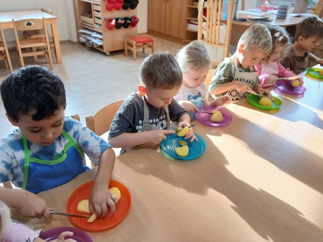 Společně jsme se také věnovali poznávání ovoce a zeleniny a dokonce jsme si uvařili chutný bramborový salát.