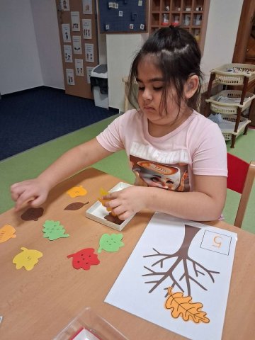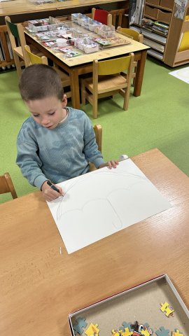 V říjnu jsme se věnovali podzimu kolem nás. První část měsíce jsme zkoumali ovoce a zeleninu všemi smysly, upevňovali jsme předložky a počty. V druhé polovině října jsme pozorovali zabarvené listí, padající listí ze stromů, mlhavé počasí, déšť a mnoho dalších znaků podzimu. Procvičovali jsme grafomotoriku a vzájemnou spolupráci při plnění různých úkolů. Společně jsme upevňovali již naučené a přidali k tomu nové písně a říkadla.