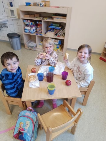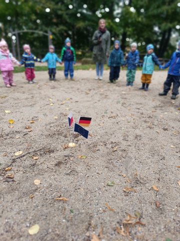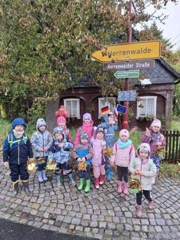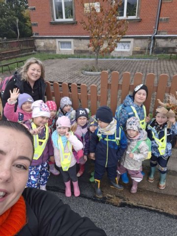 Tento týden ve středu jsme jeli autobusem na návštěvu za kamarády do Německa. Po příjezdu do Waltersdorfu nás paní učitelky a německé děti srdečně přivítaly (i česky). Po svačině a hygieně byl pro nás připraven program - procházka do lesa, kde měly děti za úkol sbírat listy (tělo housenky), které navlékaly na drátek. Společně si děti výtvory prohlížely a zkoumaly, kdo má větší housenku z listí. Dětem se výlet moc líbil a i když nám počasí moc nepřálo, tak jsme si to všichni společně moc užili.