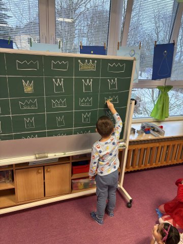 Týden nám začal svátkem Tří králů, proto jsme si o nich přečetli příběh. Zjistili jsme kam putovali, jak se jmenovali a také jaké dary nesli Ježíškovi. Naučili jsme se o nich písničku, porovnávali jejich koruny nebo si vyzkoušeli jak těžké pro ně bylo překonat cestu s korunou na hlavě![]()